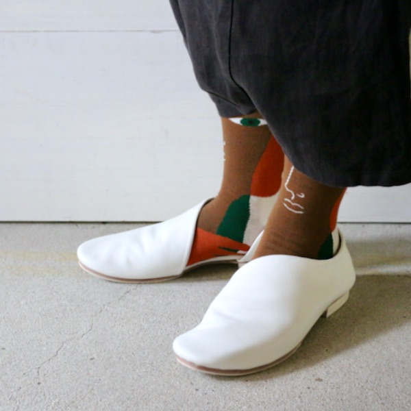 例えばクロップド丈のボトムスに素足で履く003(本品)は、男女ともに暑い夏の日のコーディネイトに欠かせない存在になってくれるはず。ですが注目したいのはそれ以外の季節。肌寒い春秋は、靴下で合わすことも楽しんでいただけます。お気に入りの靴下を靴の内側からチラリと見せ、変化に富んだ足元のコーディネイトを。