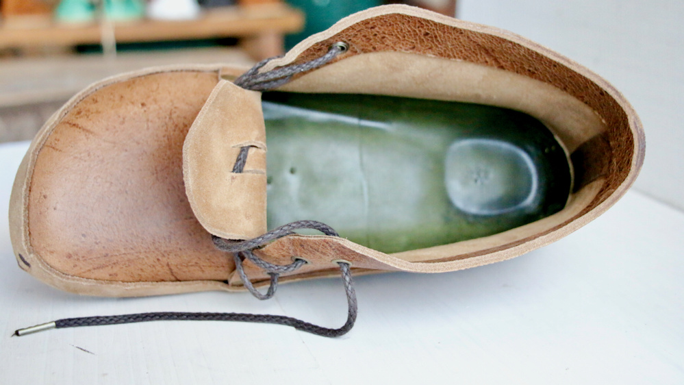 足をすっぽりと覆う革製のカップソール。そのプリミティブな容姿から、それをギャートル・ソールと名付けました。6作目となる本作は、アッパーのデザインにチャッカ・ブーツを採用。古き良きアメリカを彷彿とさせるデザインと、足を覆う原始的なソールとのミクスチャーをお楽しみください。