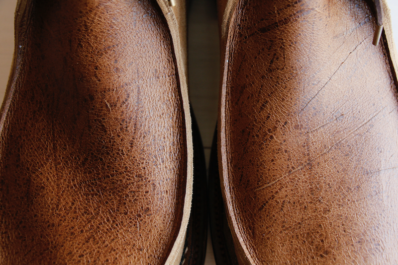 本作のアッパーのデザイン・モチーフはアメカジ。少しタイトに合わせたリーバイス501をロールアップし、靴下を見せながら履くとハマりそうなチャッカブーツ。