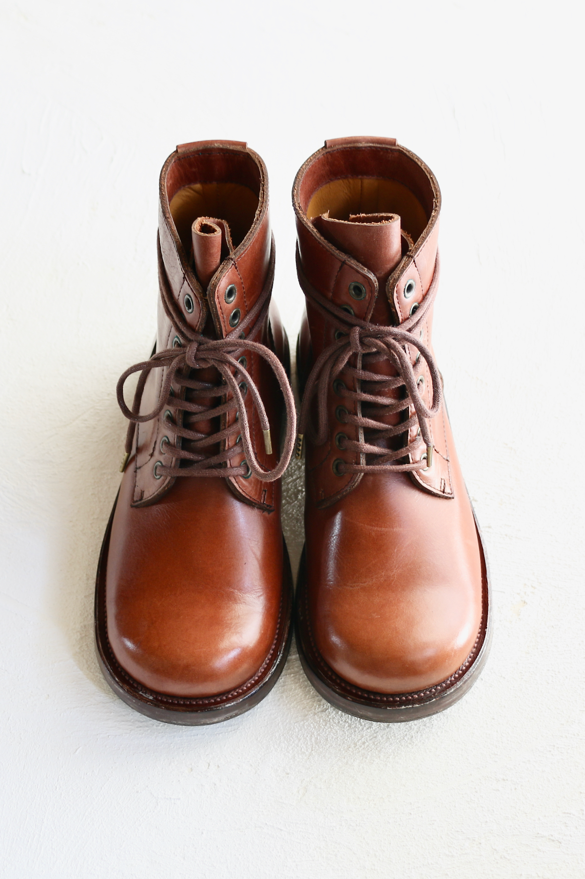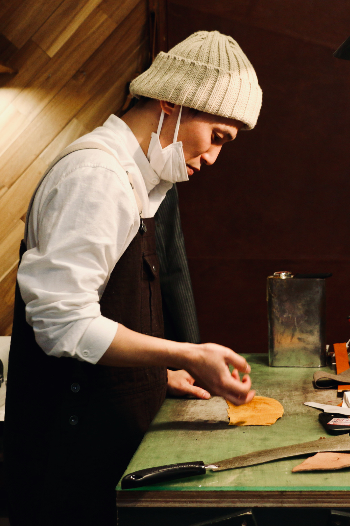 今回店頭に並ぶのは、数年前に同店とコラボレーションして生まれたブーツ。日常の生活の中で気を遣わずにどんどん履ける日用品として。そしてリペアを繰り返しながら、長く履くことで、履き手と共に育つ、自身の鏡のようなブーツをと仕立てた逸品です。普段は東京の店舗でしかオーダーいただけないのですが、今回は期間内のみ工房でもオーダーいただけるようになりました。サイズ、色素材を決め、様々なソールの形状を吟味してください。きっと 唯一無二の一生履けるレザーブーツとなるはずです。