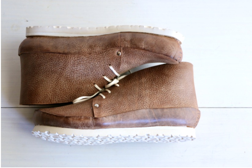 足をすっぽりと覆う革製のカップソール。そのプリミティブな容姿から、それをギャートル・ソールと名付けました。6作目となる本作は、アッパーのデザインにチャッカ・ブーツを採用。古き良きアメリカを彷彿とさせるデザインと、足を覆う原始的なソールとのミクスチャーをお楽しみください。