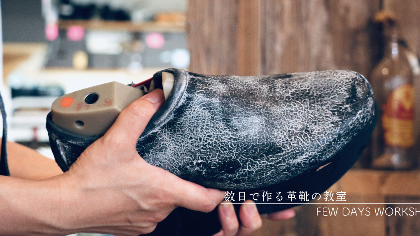 「1日で作る靴教室」。15時間ほどで決められたデザインを完成させる「数日で作る靴教室」。40時間ほどかけ、オリジナルのデザインや、様々な製法にこだわった「じっくり作る靴教室」。どのコースもリペアを施しながら長く履けるよう、私たちの培ったノウハウを余すことなく詰め込みました。