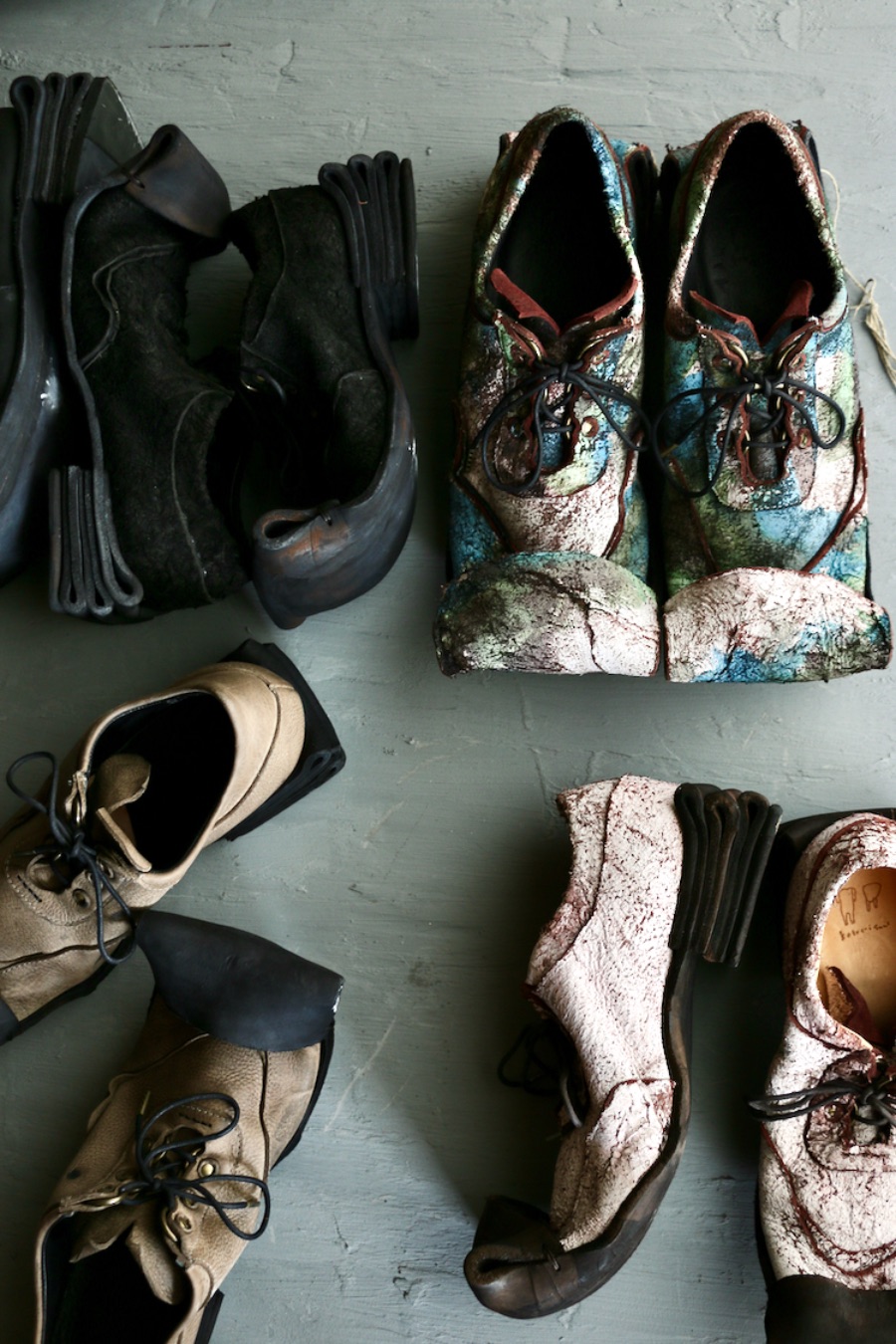 “景色”を革靴に投影すべく、新しく出来上がったマテリアルに“ジオラマ”、曲がりくねったソールには“地球”(テラ・ソール)と名付けました。創作の進行中は、革靴ではなくジオラマを作っているような、鷹になり滑空をしながらそれを眺めているような、今まで体験したことのない不思議な感覚が常に宿っていたような気がします。