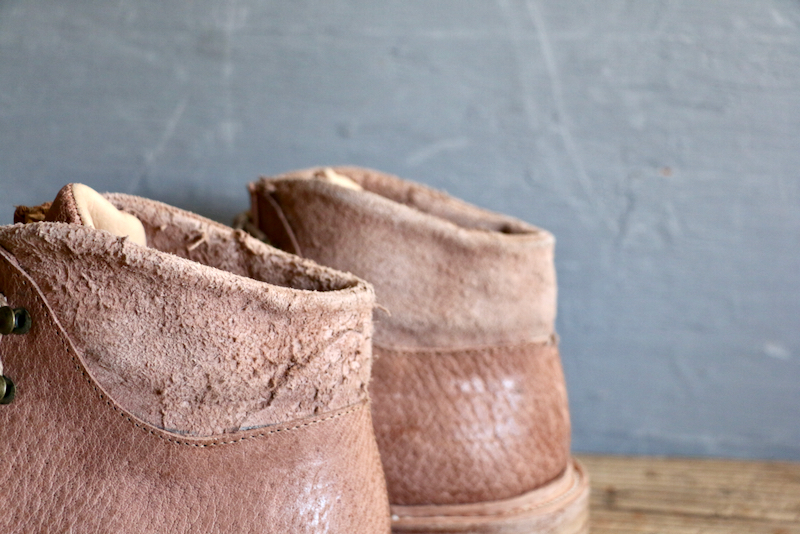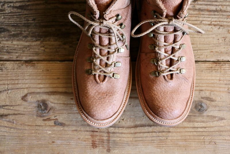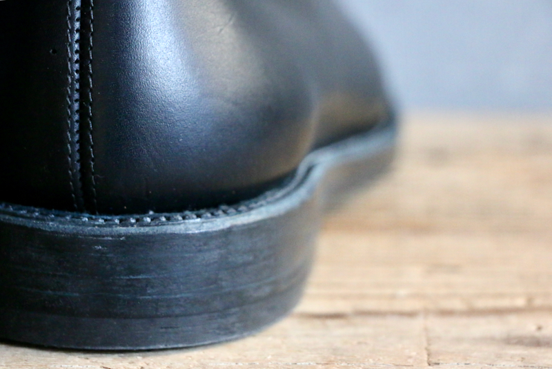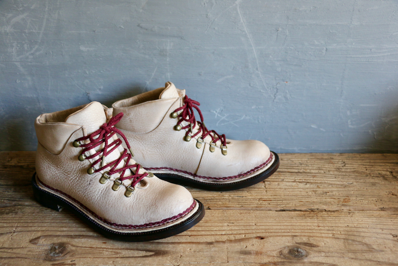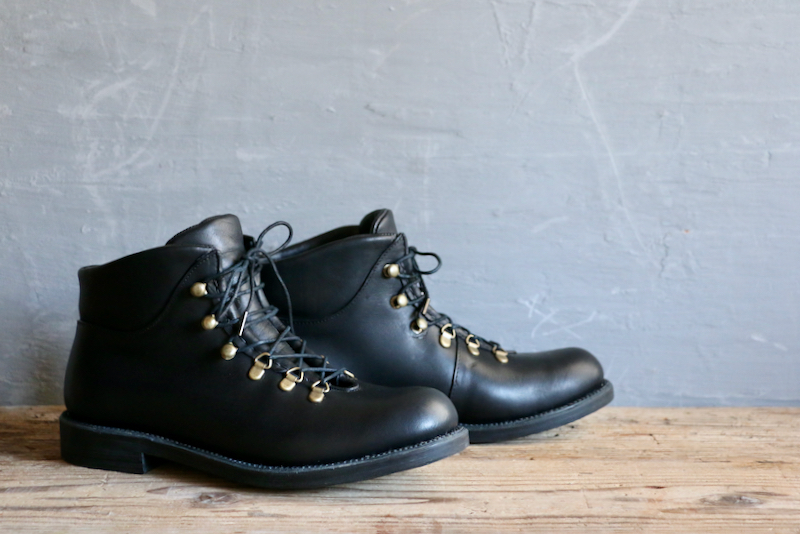 画像はステッチダウン製法で作られたシングルレザーのザ・ハイク。ソールは薄くすっきりとした印象に。納期は12〜16週間。ユニセックス。72600yen(w/tax)