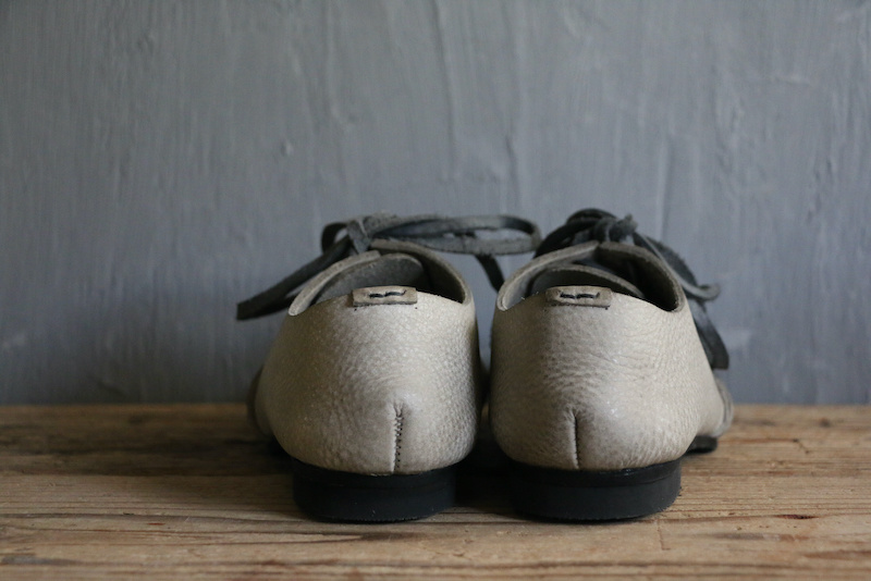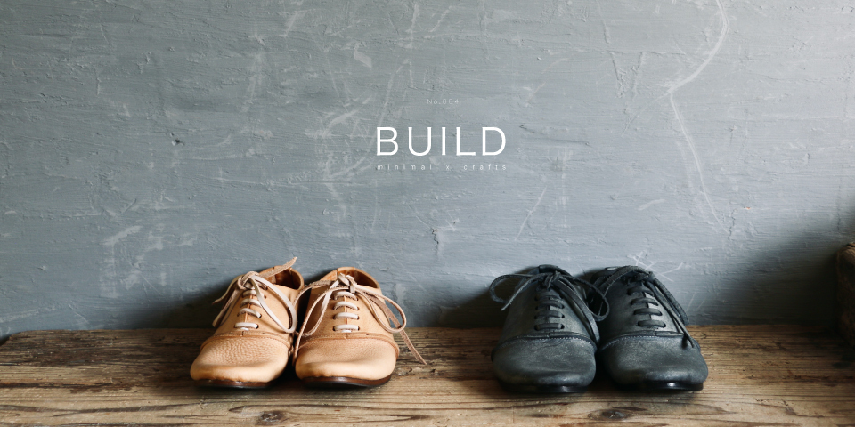 “限りなくシンプルな足元”をブランドのコンセプトに展開するビルドの4作目がリリースとなります。今回のテーマは“ミニマル×クラフツ”。しなやかで優しい素材をアッパーに使い、足を覆うように包み込む優しい風合いになるように配慮した過去3作とは対照的に、今回は分厚く自立する革をアッパー素材とし、ざっくりと、素朴なフォルムとなるよう心がけました。羽根の付け根と踵にあるハンドステッチや、甲部分を横一文字に走る革の断面。ときにダイナミックに。だけど繊細に。絶妙なバランスで織りなす、アンビバレンスをお楽しみいただければ幸いです。