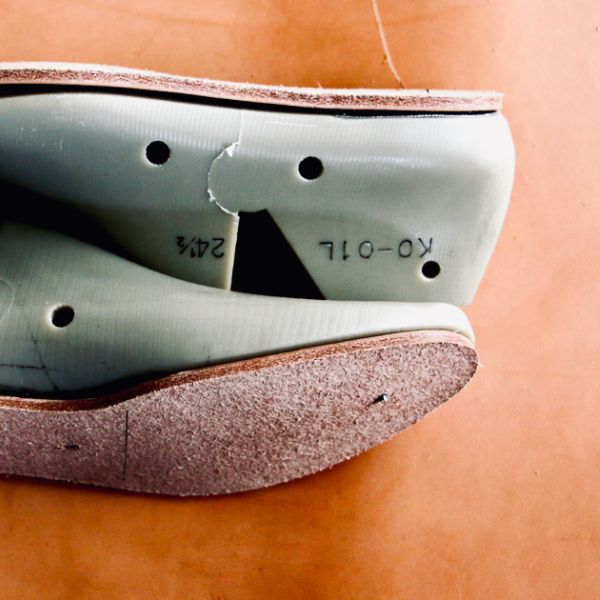 本製品に使用される革の割合は95%を占めます。(残りの5%は靴紐や、ソールの中に入るコルク。シャンクと呼ばれる鉄製の芯など)。そのうちの約50%はアッパーのパーツに。残り約50%はソールやヒールといった底周りのパーツに分けられます。すべてのパーツに使用される革は吸排出性に富み、汗を吸いやすい性質を持っています。