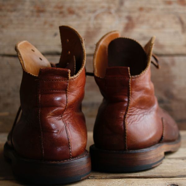 定期的にクリームを塗り、ケアをしながら履いていくと、次第に靴の表情は変化していきます。履き手の足なりに、甲に皺が入り、履いて来た環境で革の色も変化します。何年も履き続けたザンパノを眺めながら、ともに歩んできた人生を振り返る。使い手それぞれに違った人生があるように、靴もまたそれぞれに育ちます。私たちを映す鏡のようなエイジングが、美しくありますよう。