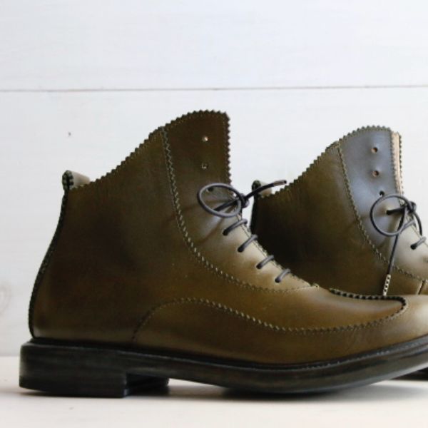 靴紐を結んだところから、踵へのラインは、緩くカーブを描きながら下がっていきます。履き口のラインに高低差をつけたのは、夏場にも快適に履いていただきたいから。履き口が地面と並行なブーツの筒は、どうしても暑苦しく見えてしまいます。ザンパノの履き口のラインなら、通年とおして、様々なコーディネイトで楽しんでいただけることでしょう。